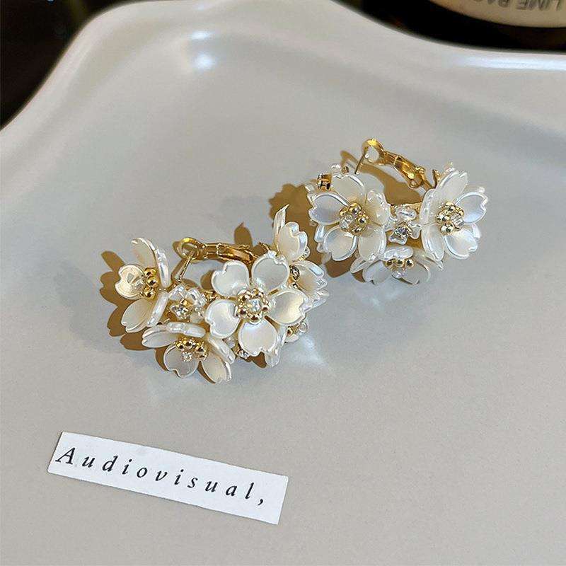 Pendientes de flor blanca de resina romántica dulce para mujer, pendientes de racimo de flores de perlas de imitación elegantes a la moda, accesorios de joyería Pai