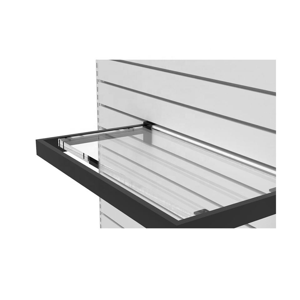 Estante de Exhibición de Pared de Tablillas Swift Courser, Metal con Recubrimiento en Polvo, Acrílico, Vidrio, Madera, de una Pieza, para Exhibición y Almacenamiento de Ropa