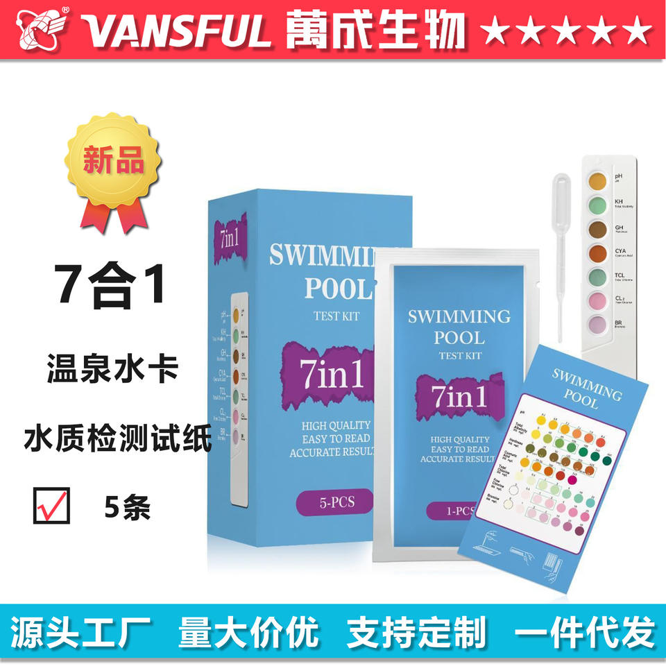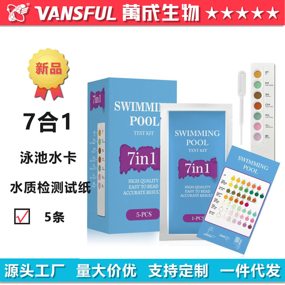 Kit de Prueba para Piscina 7 en 1, Tiras de Prueba para pH, KH, GH, CYA, TCL, CL2 y BR, para Detección de Calidad del Agua