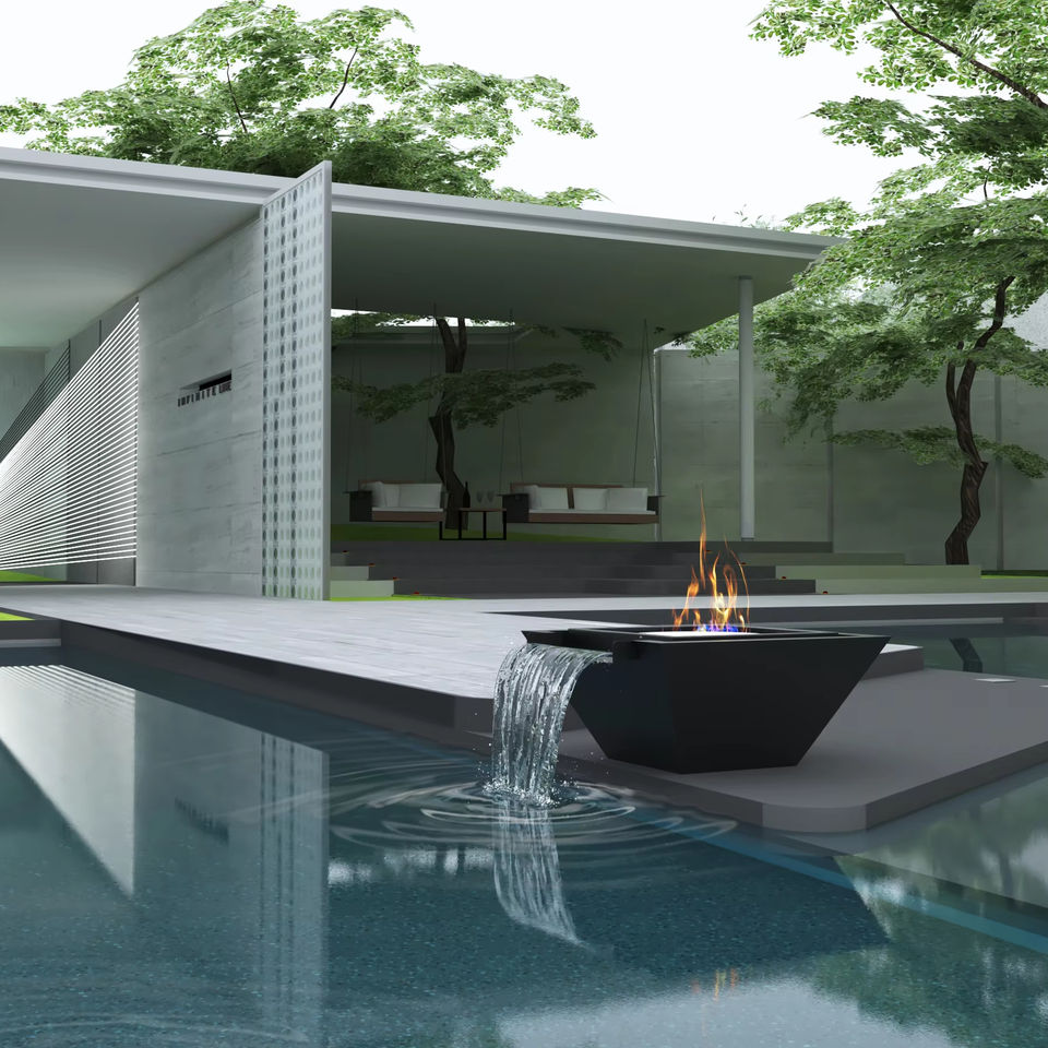 Item:Outdoor Fire Pit Decorative Corten Steel Gas Fire Pit with Water Falls