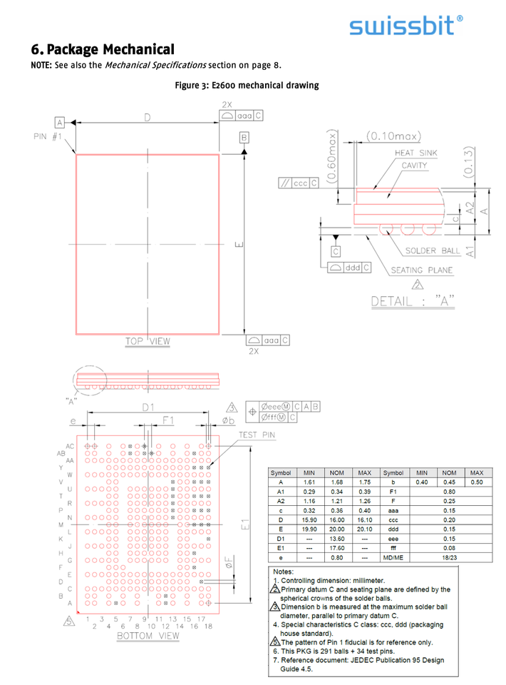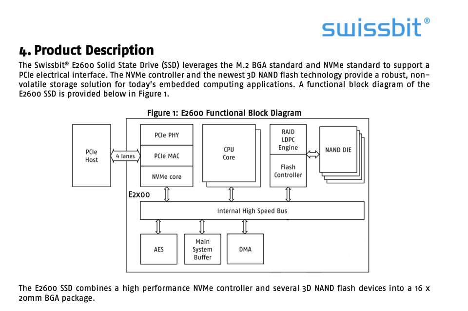 Número de Modelo:Swissbit E2600 Series PCIE Gen3 SSD Chip BGA package SLC mode 20 GB up to 160 GB