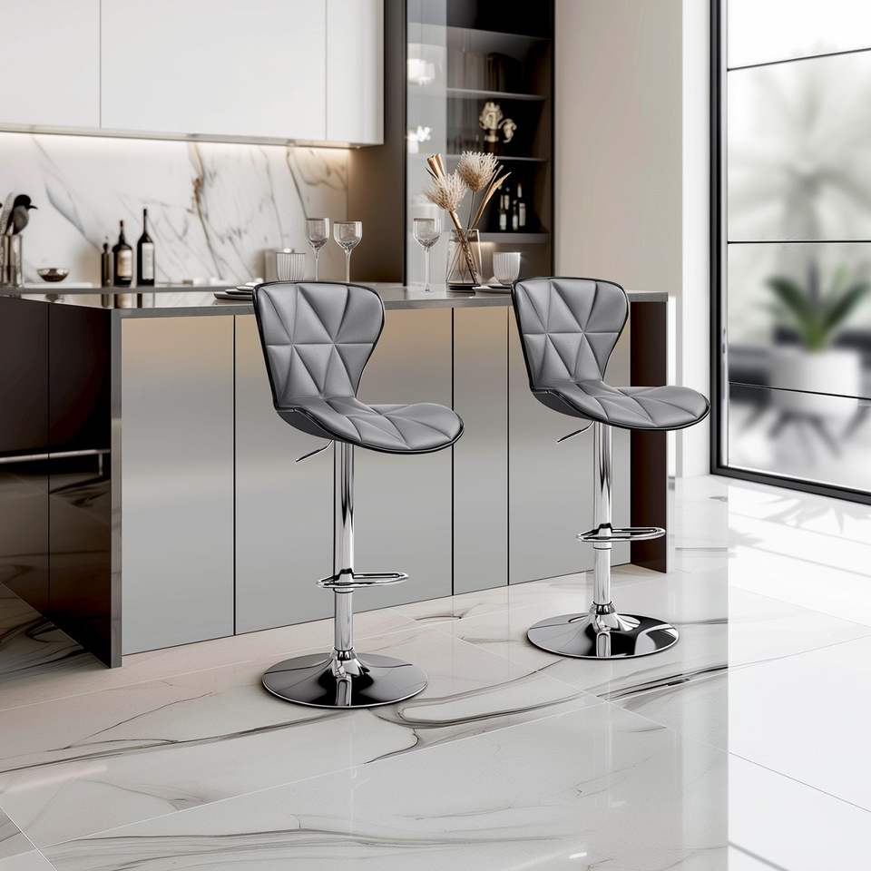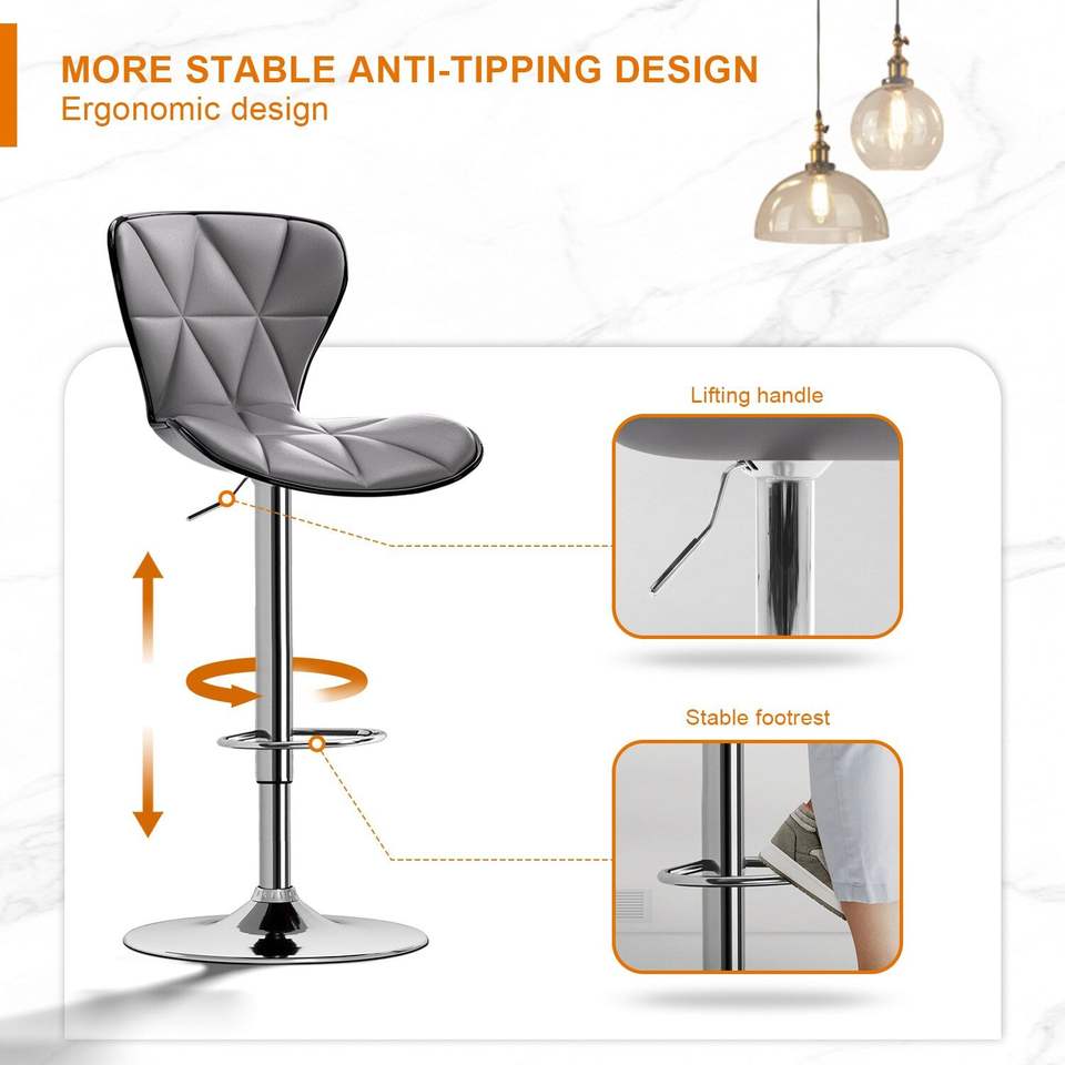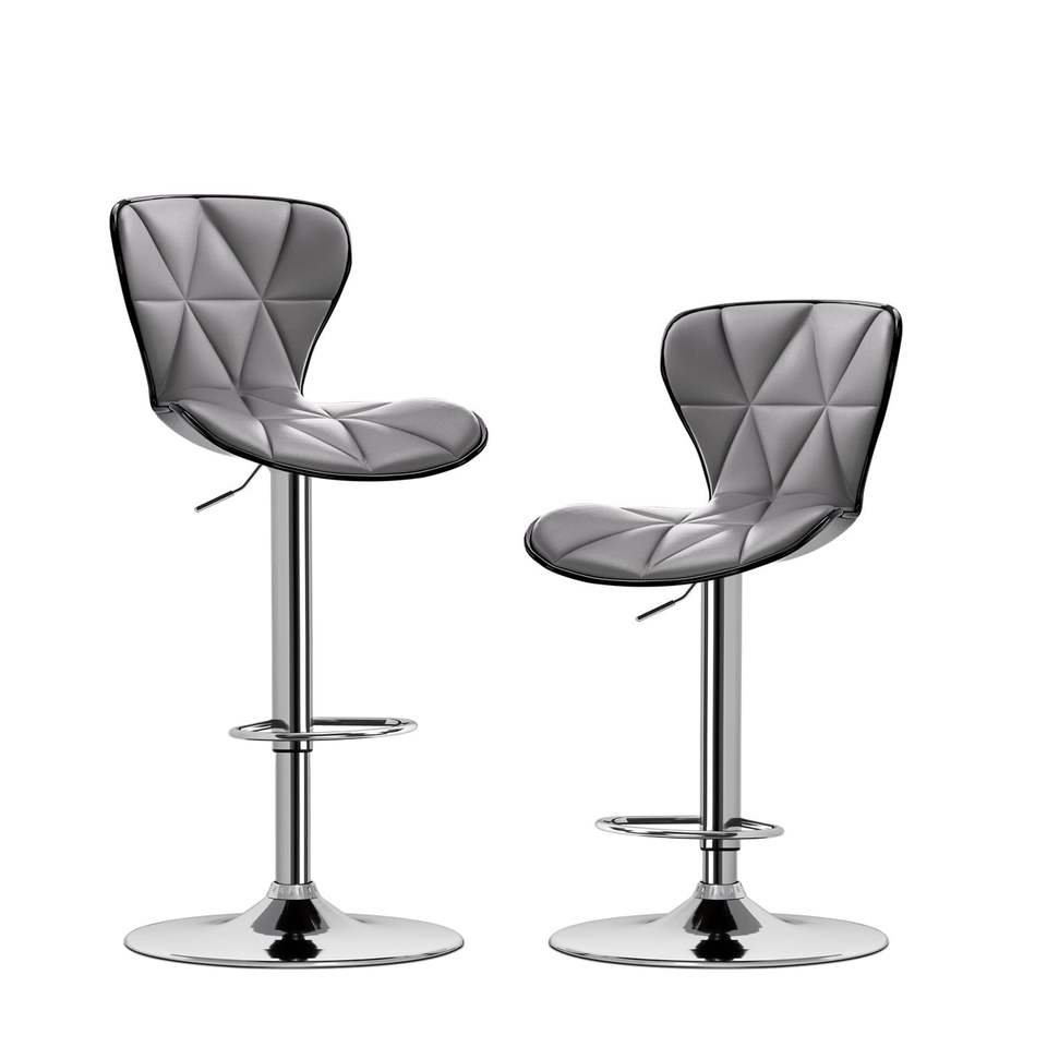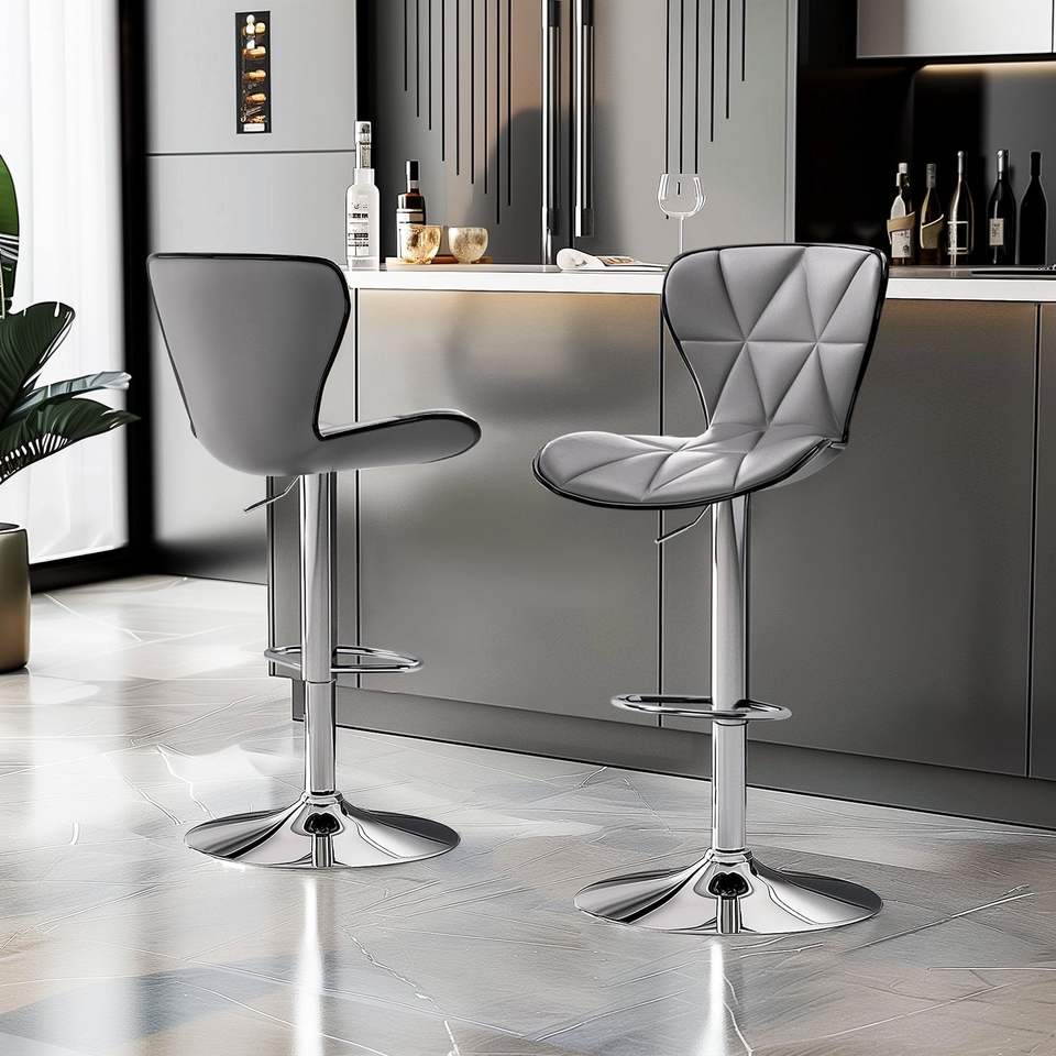 Juego de 2 Taburetes de Bar Ajustables y Giratorios, con Respaldo de Cuero PU, Cómodos, para Oficina, en Gris