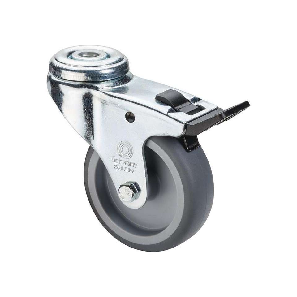 Rueda giratoria con tope total DM 50 mm tapa de carga. 50 kg con agujero trasero 10,2mm cojinetes de fricción goma gris
