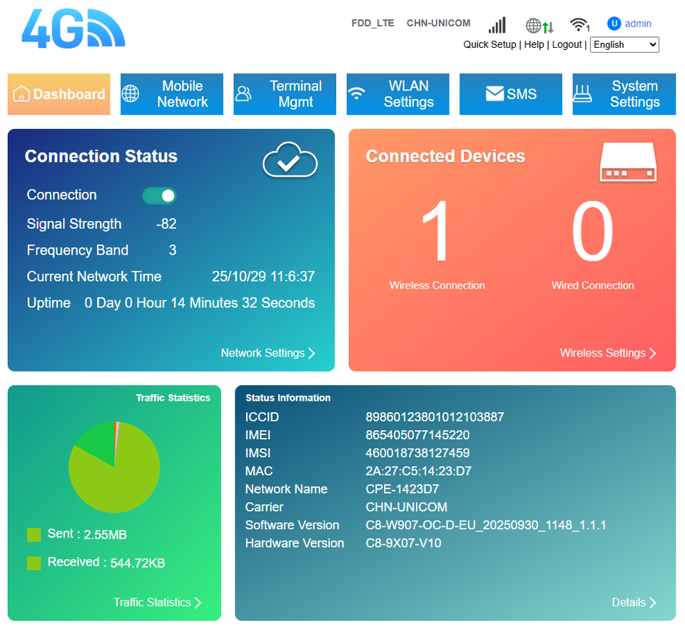 Banda de Frecuencia:B1/3/5/7/8/20/38/39/40/41 o personalizado