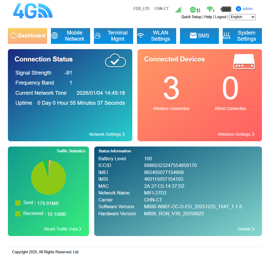 Band:B1/3/5/7/8/20/38/40/41(In default)