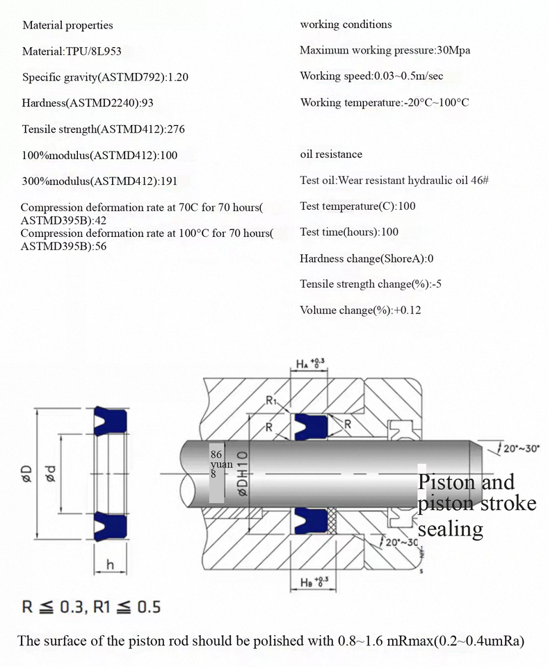 Anillo en U simétrico PTFE para bombas de precisión, baja fricción, alto desgaste, resistente, fabricado en China