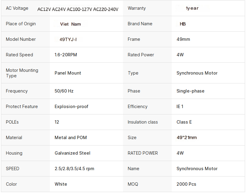 Motor síncrono 49TYJ Eje personalizable Motor de CA monofásico 1224V 110220V 1,6 20RPM CWCCW