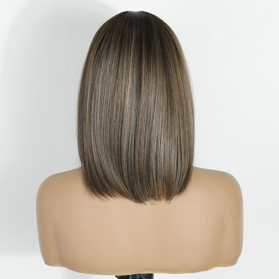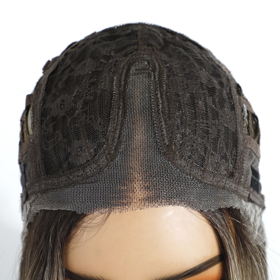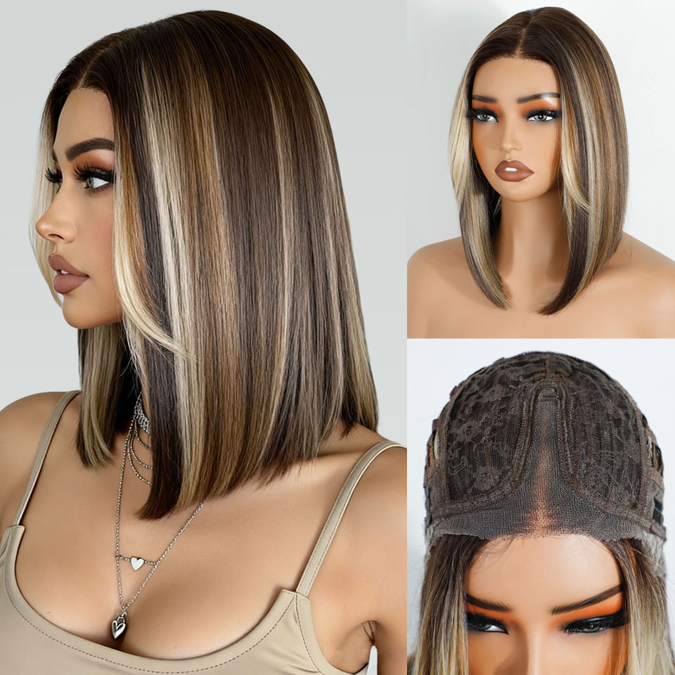 Peluca sintética con frontal de encaje, color con mechas, fibra resistente al calor no inflamable, encaje HD Futura sintético, peluca de lujo sintética sin pegamento (glueless)