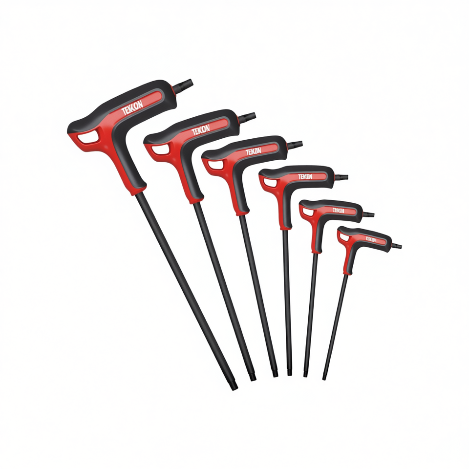 Juego de Llaves Hexagonales con Mango en T, 7 Piezas, Métricas, Mango Rojo y Negro, Largo Alcance, Herramienta de Precisión