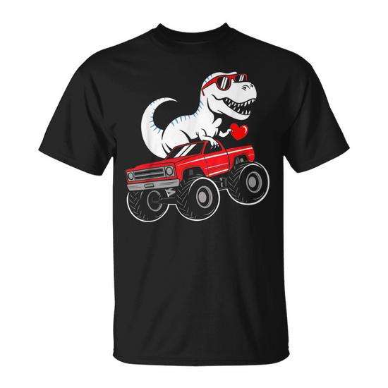 Camiseta para niños pequeños con diseño de T Rex Riding Monster Truck para el día de San Valentín
