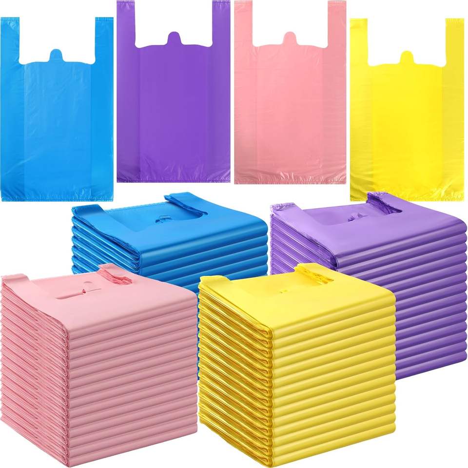 Bolsas de PE biodegradables al por mayor con fuelles laterales y asas largas para hombro, para compras, supermercado, venta minorista y pequeños negocios