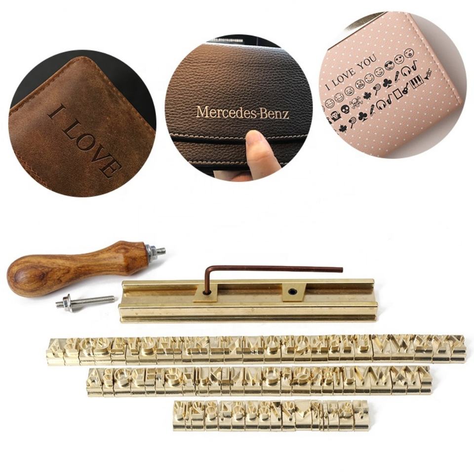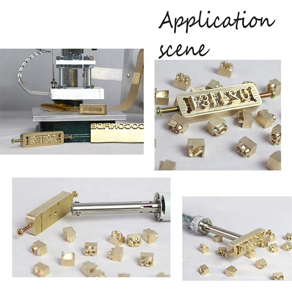 Molde de latón con ranura en T para letras móviles: 26 mayúsculas, 26 minúsculas, 10 números y caracteres