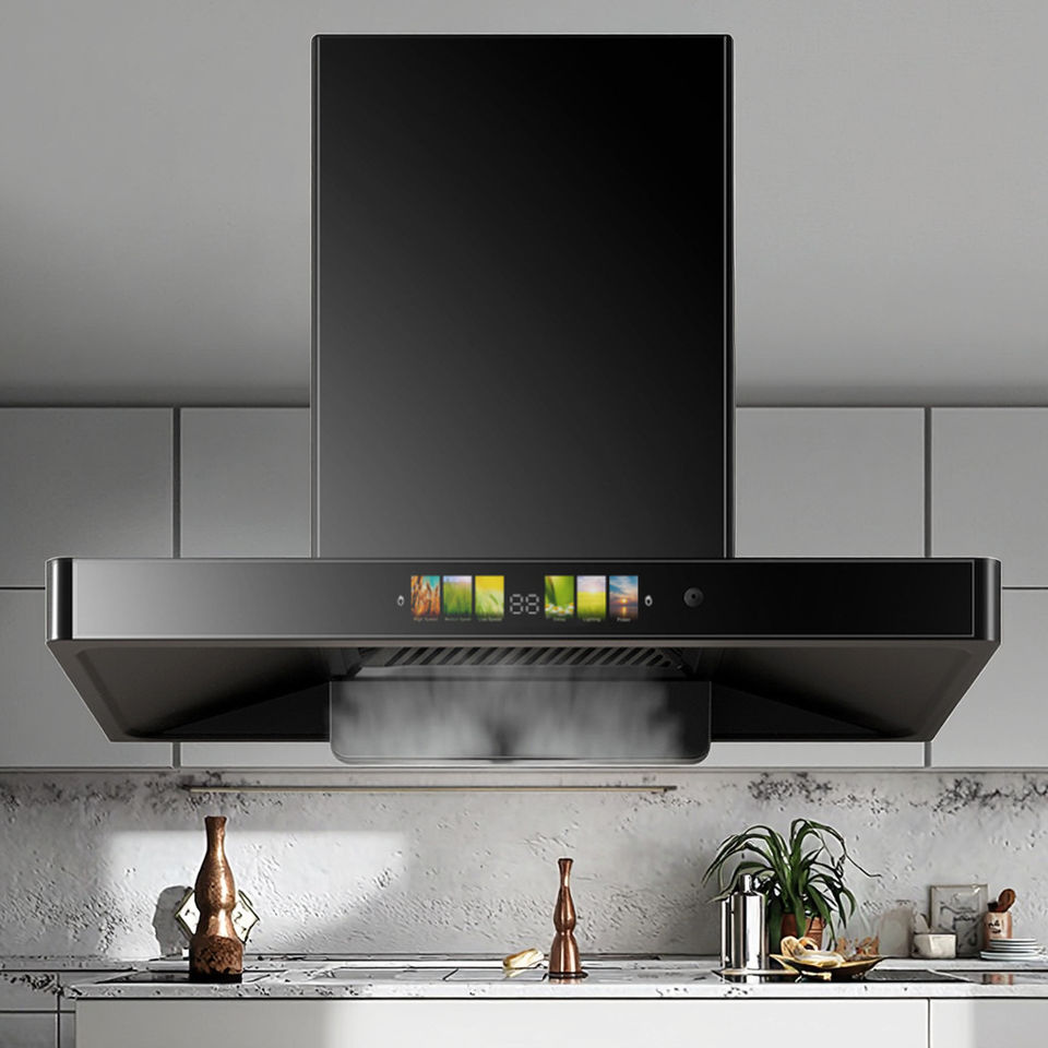 Campana extractora de humo inteligente de 90cm en forma de T, campana extractora de escape para cocina, Hoteles Familiares aplicables