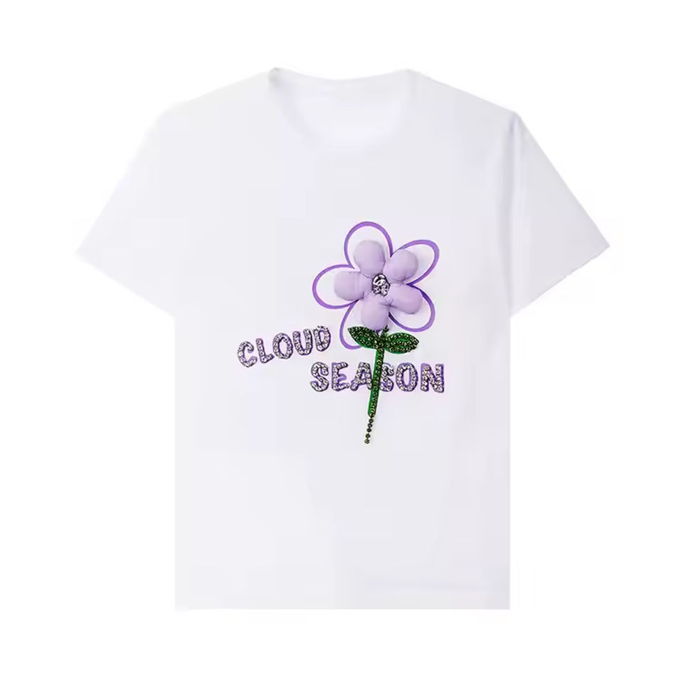 Camisetas con Diseño de Flores, Estampado con Pedrería, Camiseta Corta, 100% Algodón Tejido, Camiseta Holgada para Mujer