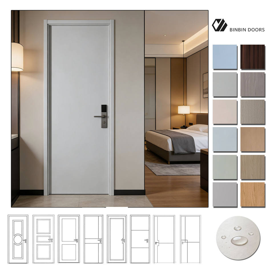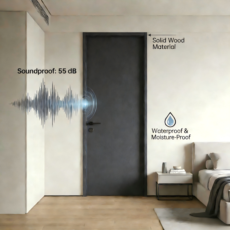 Puerta Interior de Madera con Tres Ranuras de Sellado Tipo T, Insonorizada 55dB, Lámina de PVC, para Apartamento/Loft, Tamaño y Color Personalizados, Impermeable, 2 Años de Garantía