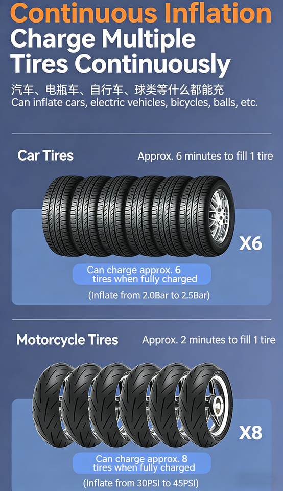 Modos de Inflación:Coche/Motocicleta/Bicicleta/Balón/Personalizado