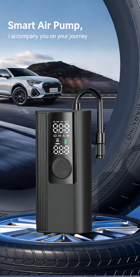Inflador de Neumáticos Portátil T01 con Bomba de Aire ABS, 150 PSI, Linterna, Función de Banco de Energía, Inflado Rápido, Monitor de Presión de Neumáticos