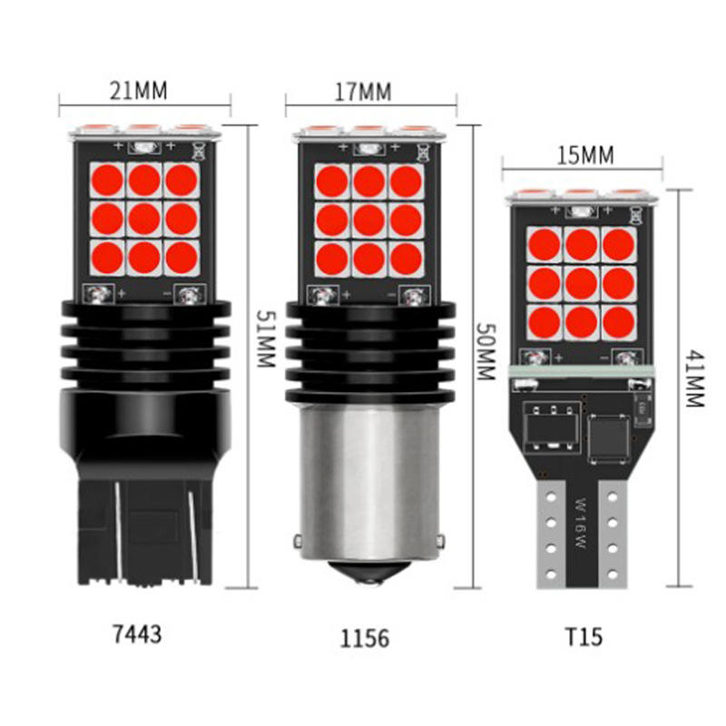 Luz Led de freno de marcha atrás T20, 3030, 24SMD, 1156, BA15S, P21W, BAU15S, PY21W, T15, PY21W, intermitente Canbus, amarillo, blanco y rojo