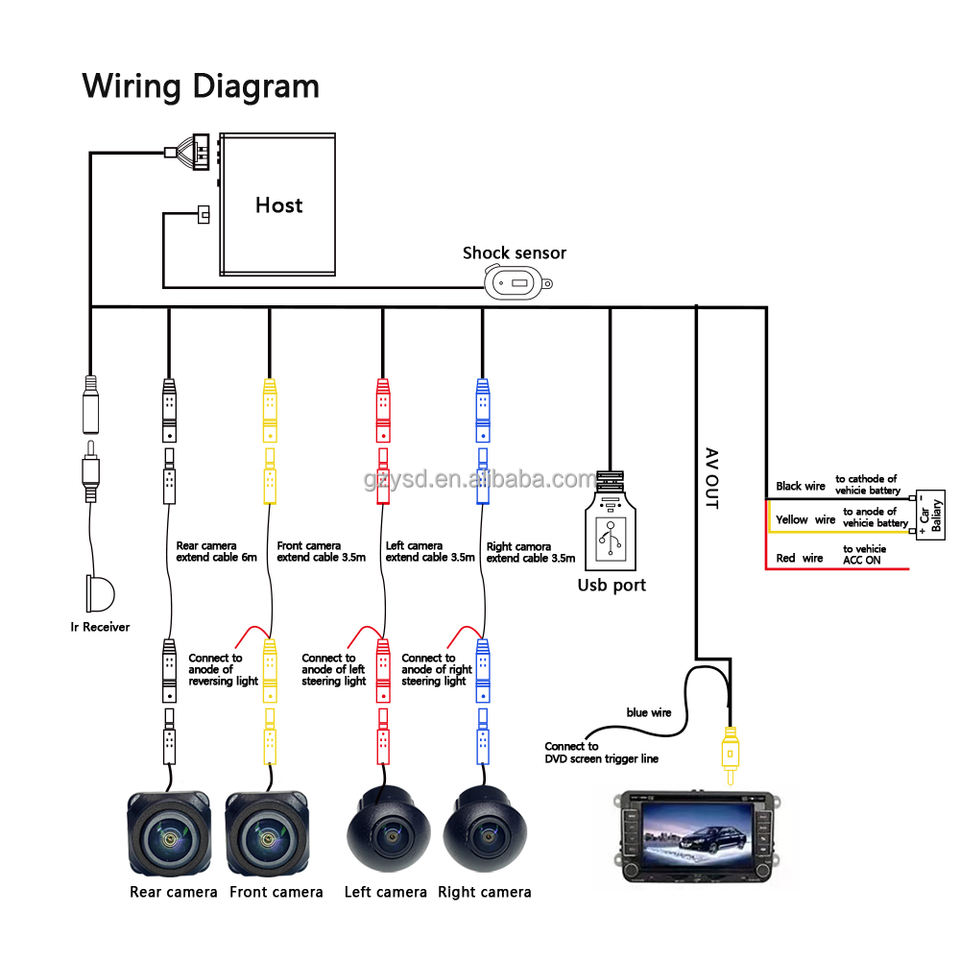 T5 Universal 360 Sistema de vista de pájaro 1080P 4 Cámara 360 vista panorámica 2D 3D 360 grados alrededor del sistema de cámara de coche cámara de vista de pájaro