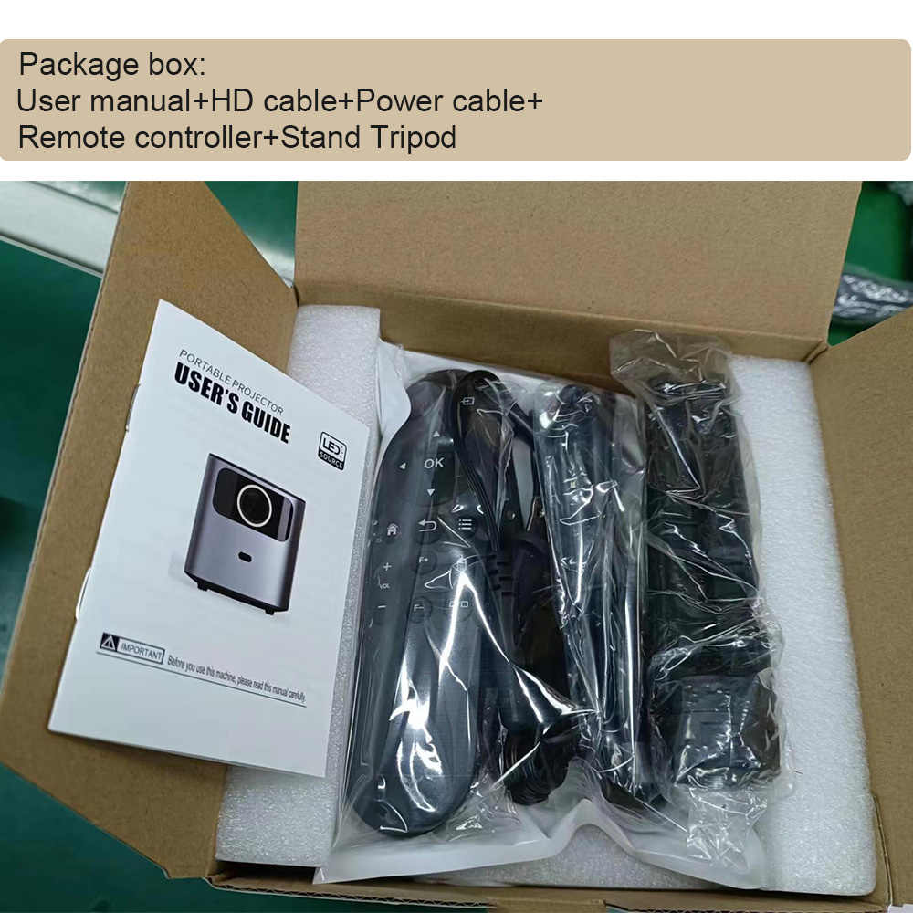Package content: 1*projector + 1*power cable + 1*user manual + 1*remote controller + 1* AV cable