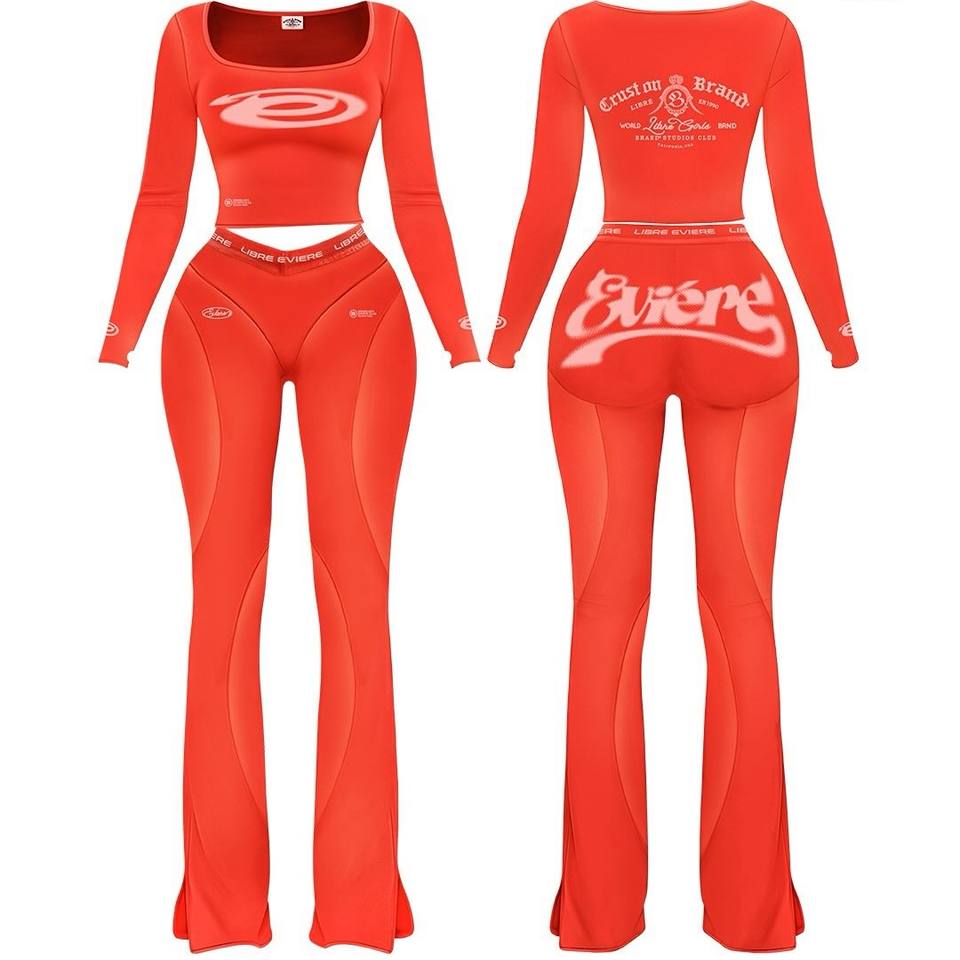 Conjunto de Dos Piezas TAHAD con Logotipo Personalizado, Primavera 2026, Top Sexy Ajustado con Borde de Encaje y Pantalones Micro Acampanados para Mujer