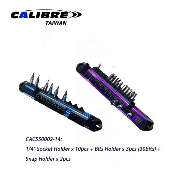 CAC550002-14 contents:1/4" Socket Holder: 10pc + 3pc Bits Holder(30bits) + 2pc Snap Holder