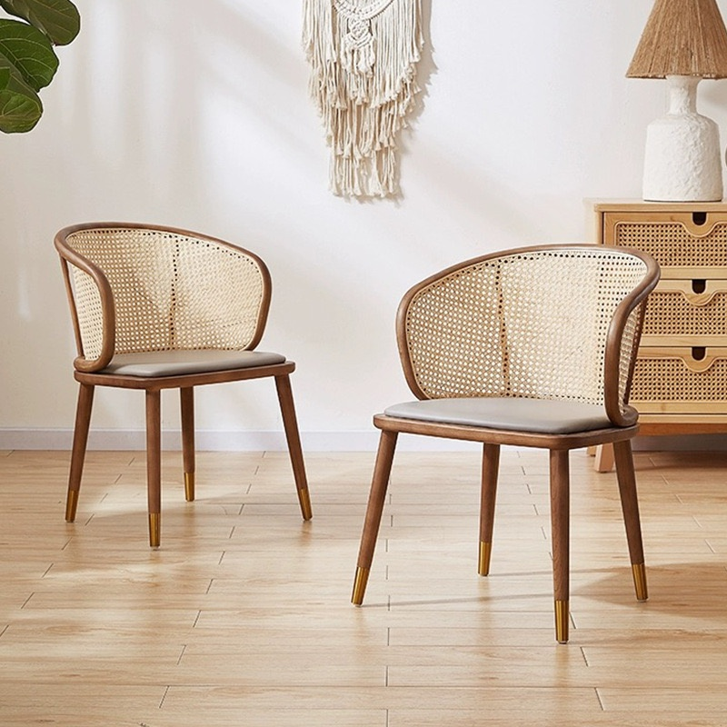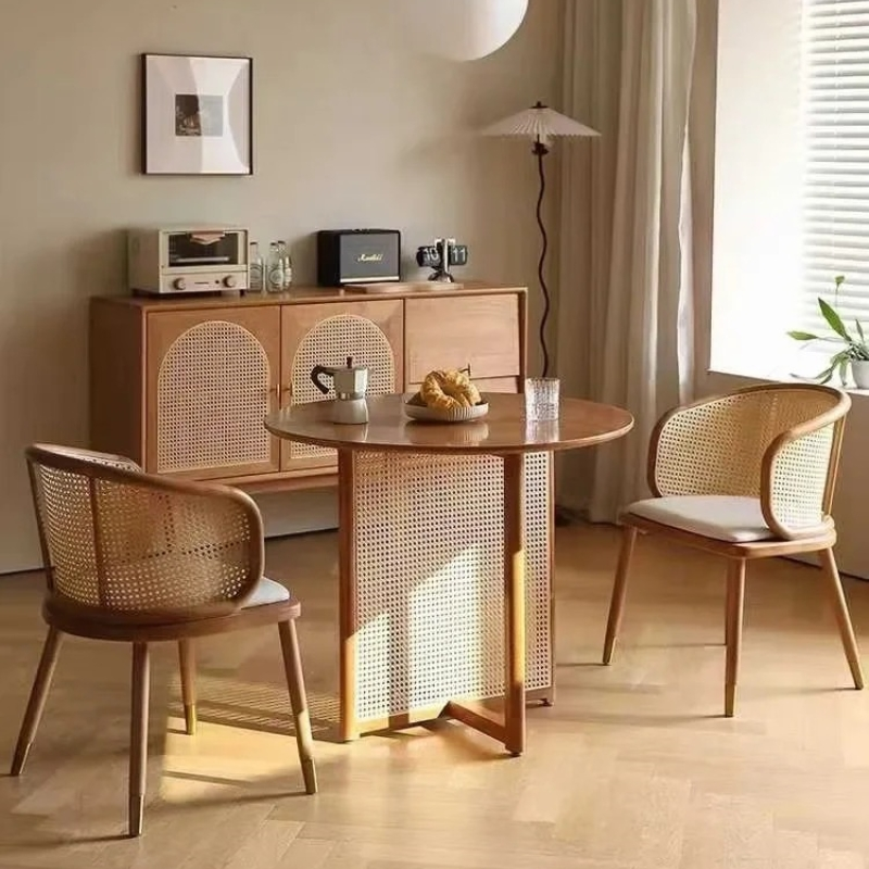 Mesa de comedor redonda de madera maciza y ratán TAKAHIRO para uso en interiores