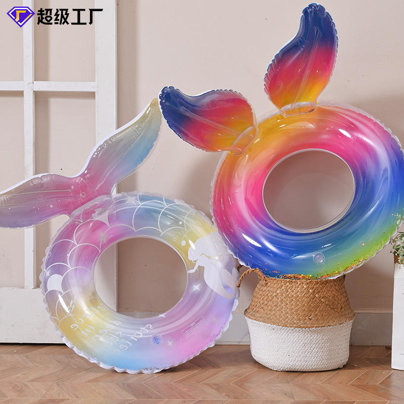 TANYOZHE Anillo Inflable de Cola de Sirena 70-120cm Arcoíris Flotador de Natación para Adultos Juguete Acuático