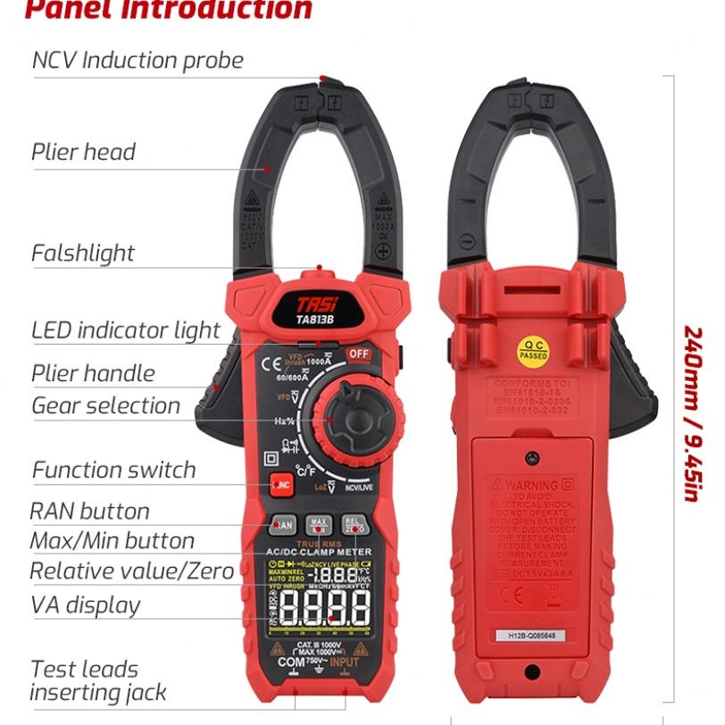 Pinza Amperimétrica de Rango Automático TASI TA813B+ - Herramienta de Prueba de Corriente/Voltaje/Resistencia/Frecuencia CC/CA, Rango 1000V/1000A, 10Hz-10MHz