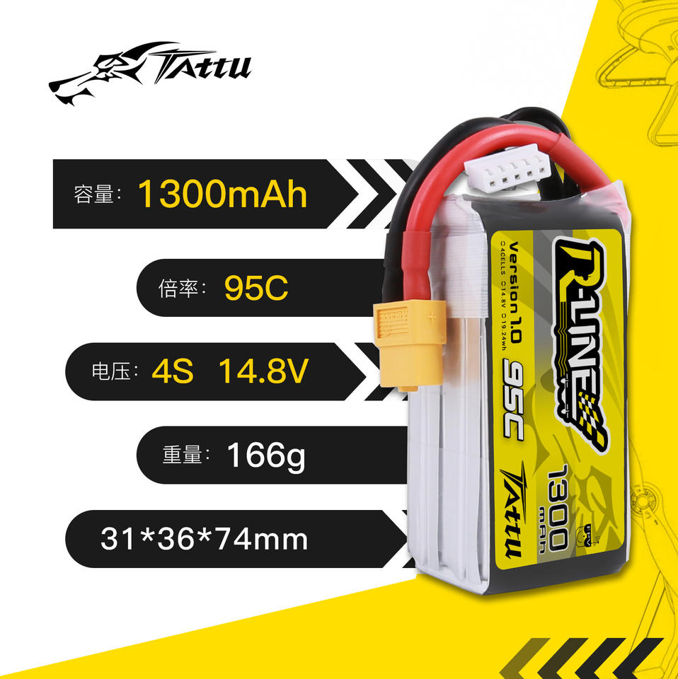 Batería LiPo TATTU R-LINE 1300mAh 95C 4S 6S XT60 para Dron de Carreras FPV