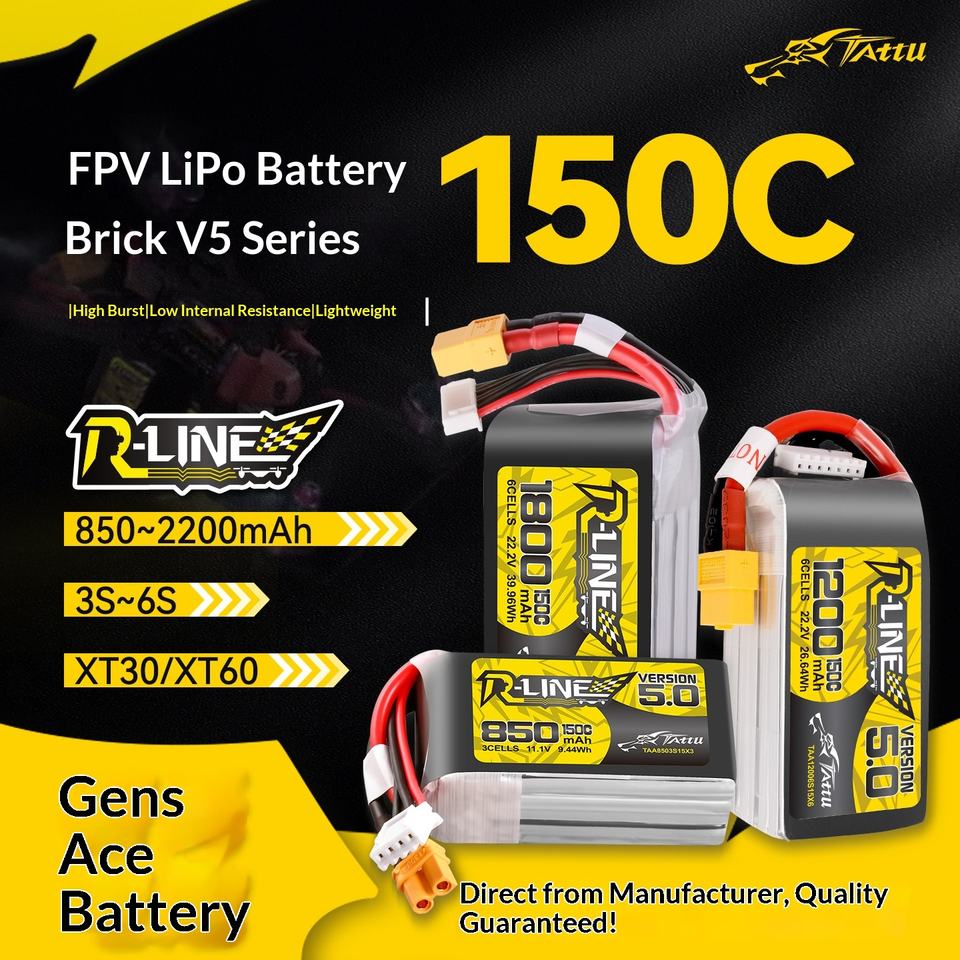 Batería LiPo TATTU R-Line 5.0 Gold Brick 850mAh 1200mAh 1400mAh 1550mAh 150C 3S 4S 6S para Dron de Carreras FPV