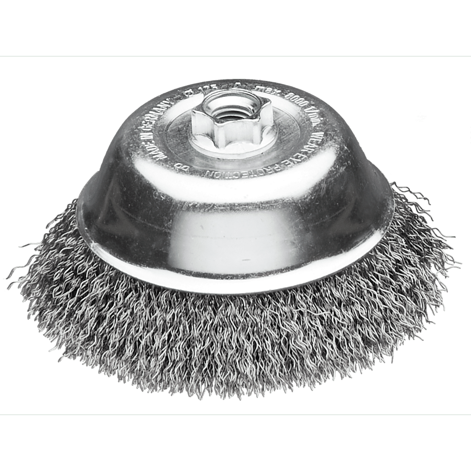 Cepillos de copa TB Drm 100 mm Alambre de acero STA ondulado 0.35 mm Rosca 5/8"-11 Altura de relleno 30 mm