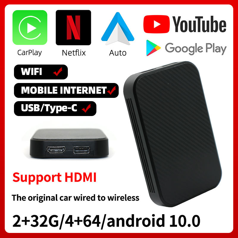 TBOX MAX Android 10 Adaptador Inalámbrico Carplay Estéreo Portátil Car Play Módulo Multimedia 4G Sim Network 4GB 64GB Carplay Ai Box