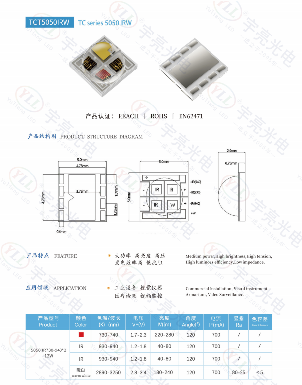 Wavelength:700nm 730nm 810nm 850nm 940nm