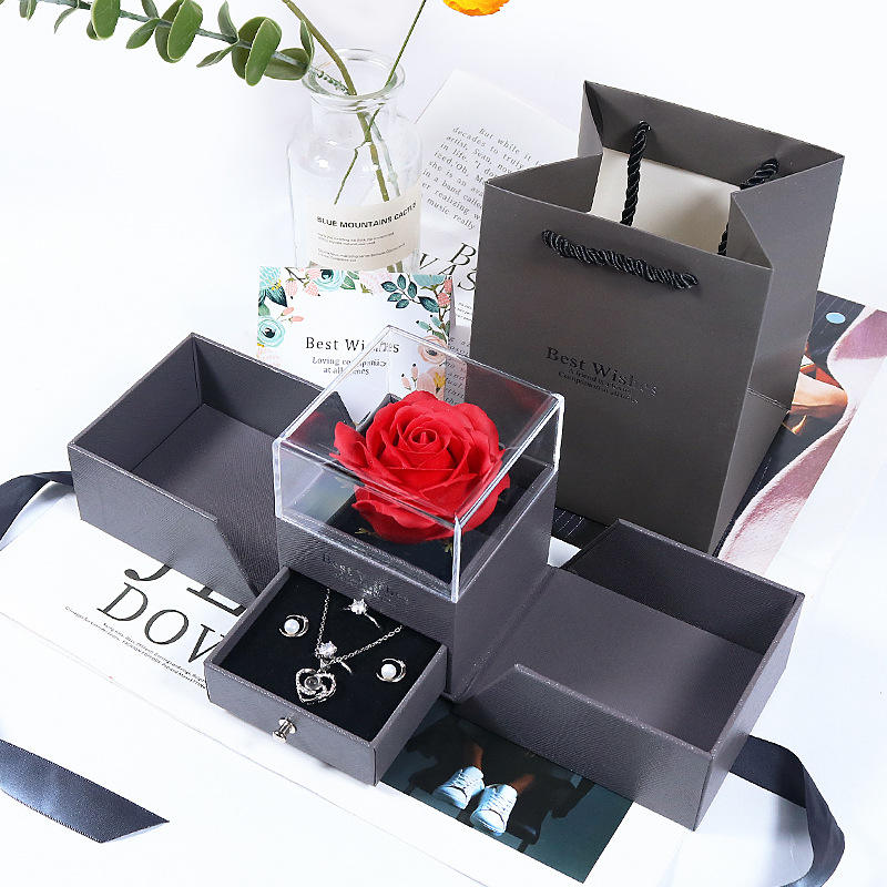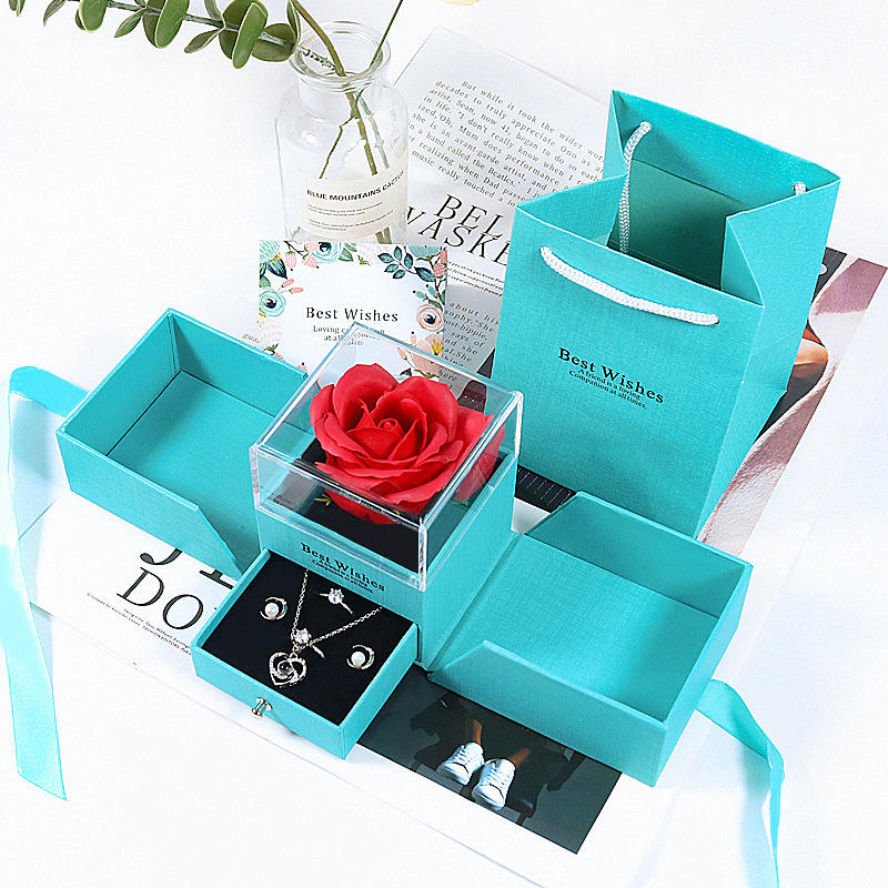 TC lujo doble cajón abierto caja jabón flor joyería caso San Valentín madres día regalo eternidad Rosa joyero