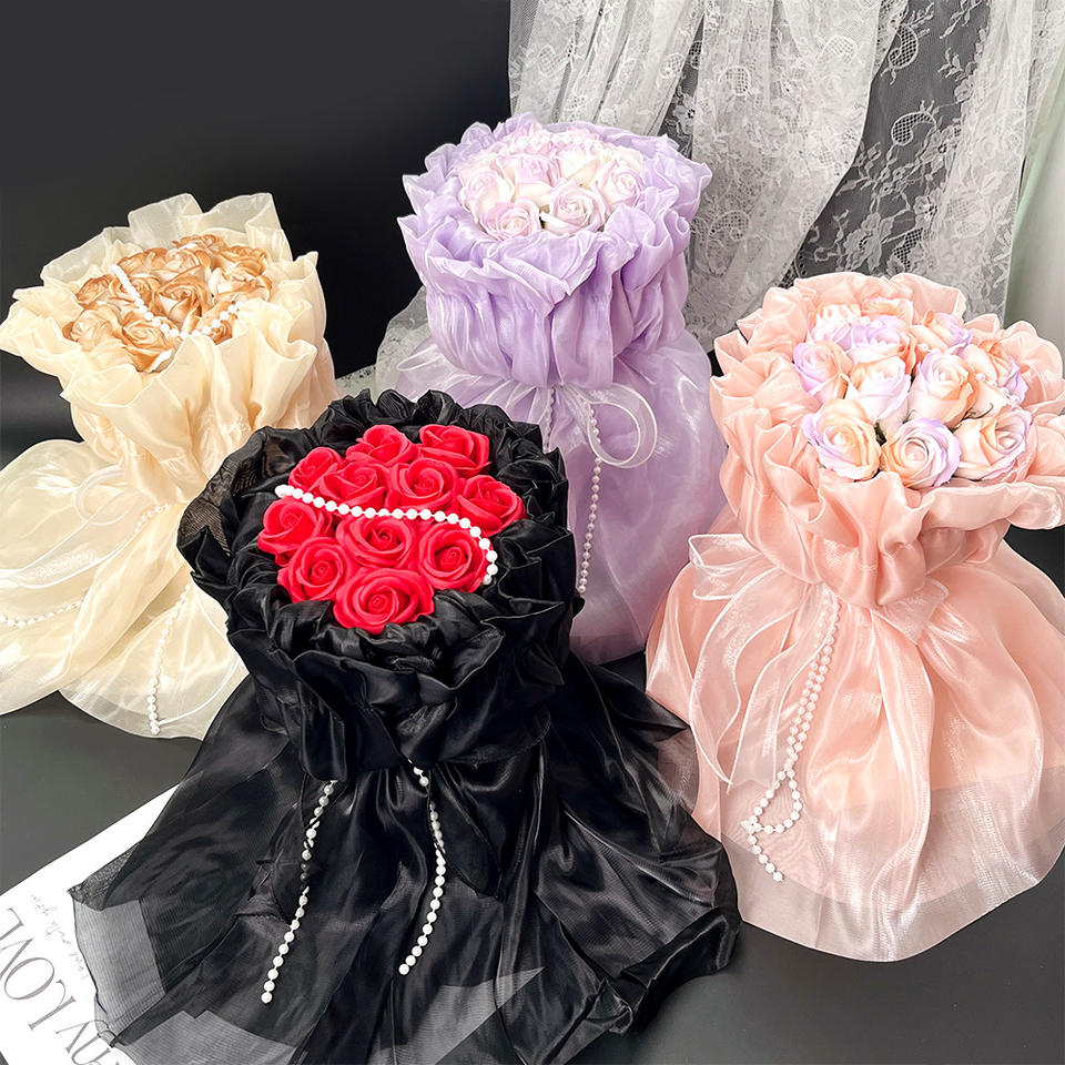 Ramo de rosas TC Luxury Eleven envuelto en flor artificial satinada brillante para cumpleaños San Valentín Día de la madre crea una atmósfera
