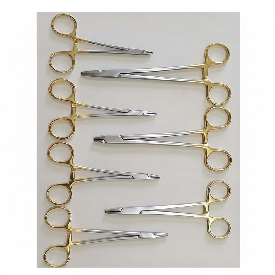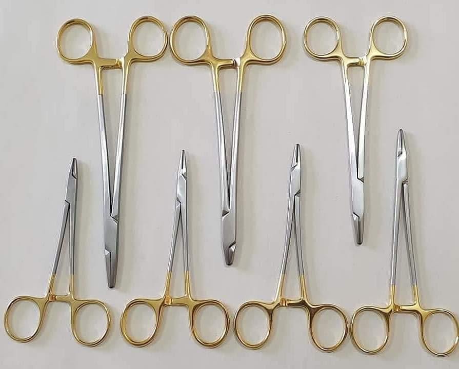 TC/Mayo Hegar Soporte de aguja de acero inoxidable Juego de instrumentos estándar con juego de soporte de aguja 7 piezas TC