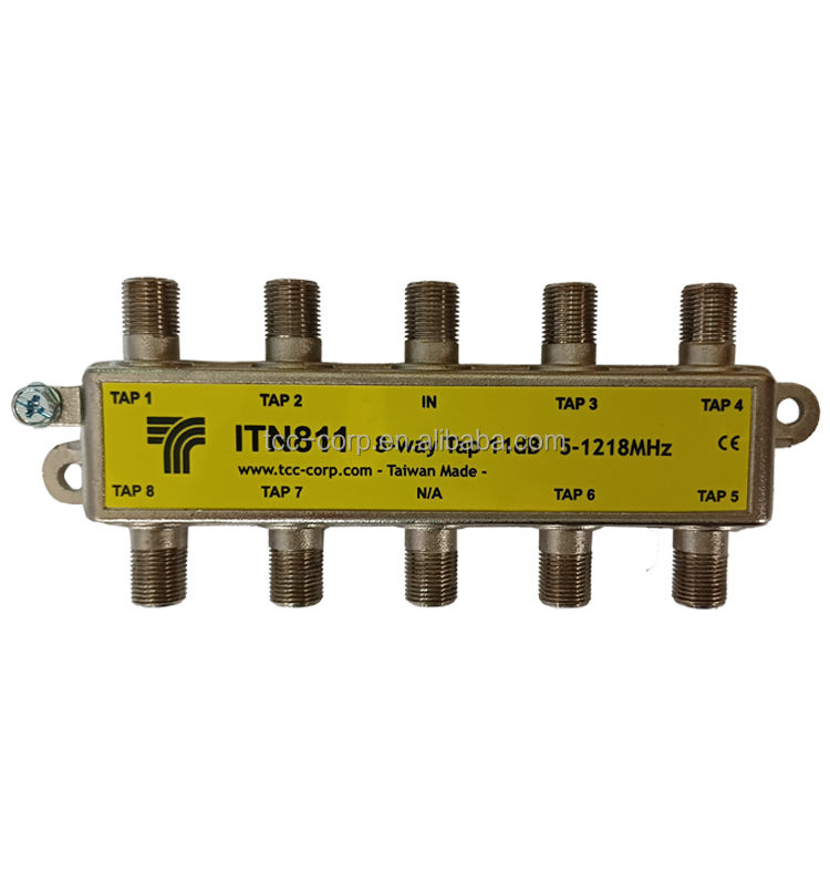 Divisor de Señal TCC CATV para Interiores de 8 Vías - Sistema 75, Rango de Frecuencia 5-1218MHz, Material Niquelado y Aleación de Zinc
