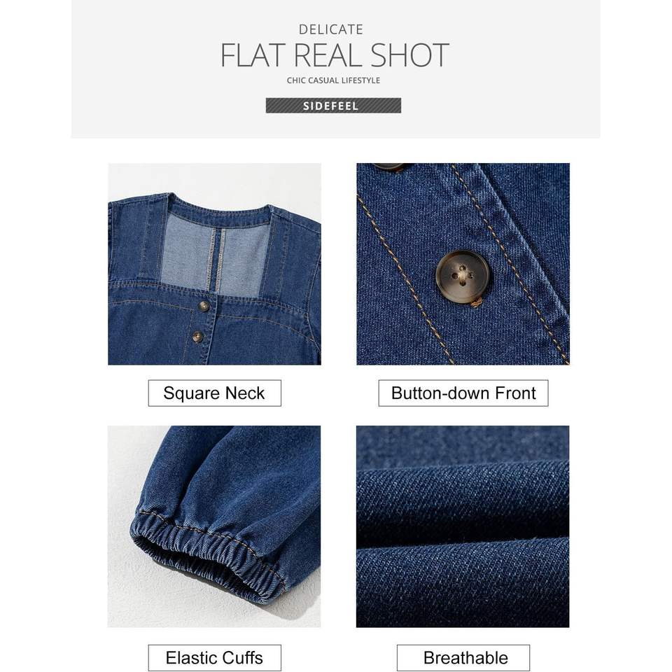 Vestido Maxi Vaquero de Primavera para Mujer TCE, Manga 3/4, Corte Holgado, Cuello Cuadrado, Sexy, con Bolsillos, Estilo Simple y Moderno para Verano