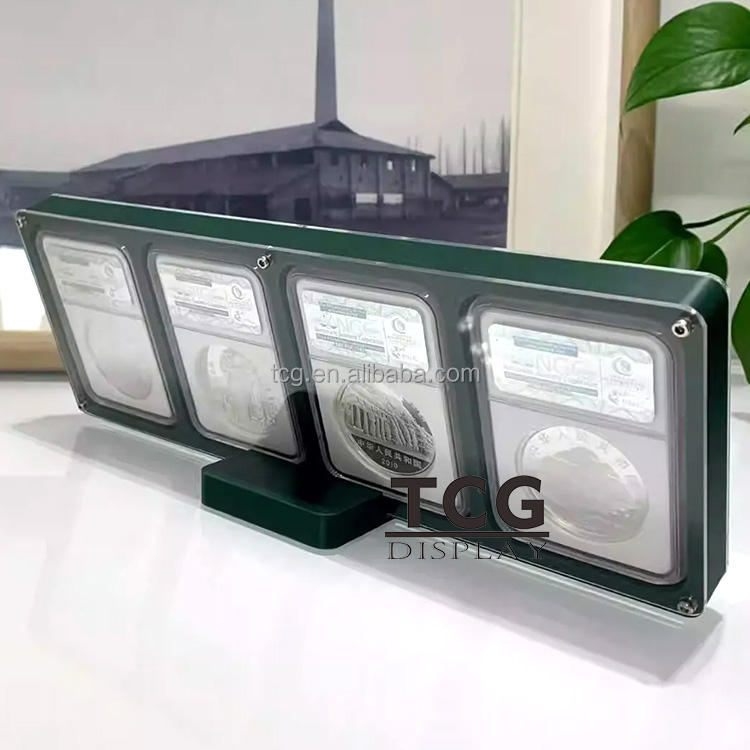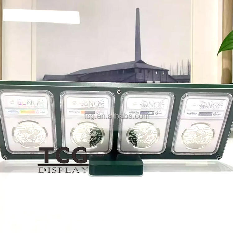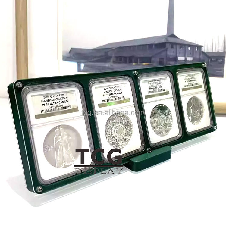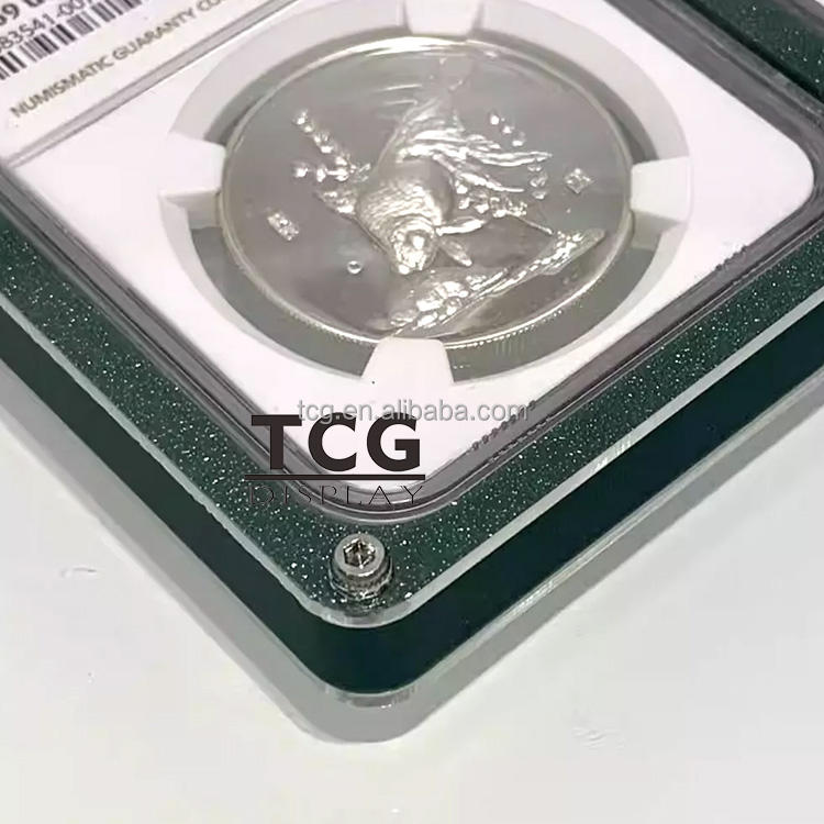 Caja de almacenamiento de celda de moneda con grado dorado de almacenamiento seguro de acrílico personalizado TCG con coleccionistas de monedas NGC PCGS IGS, caja de losa de consola