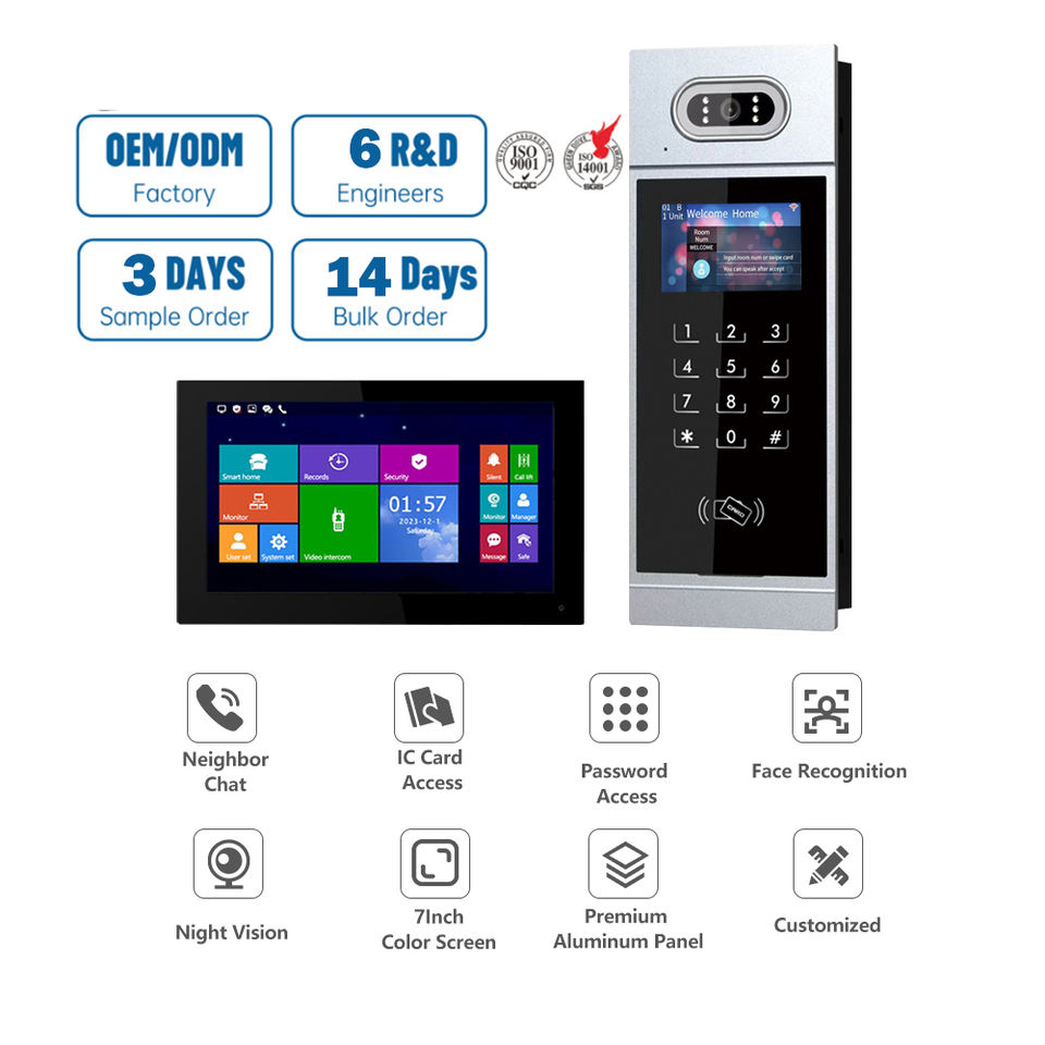TCP/IP Smart IP Video Door Phone Pantalla táctil de 7 pulgadas Reconocimiento facial para apartamentos Oficinas Sistema de seguridad de comunidades cerradas