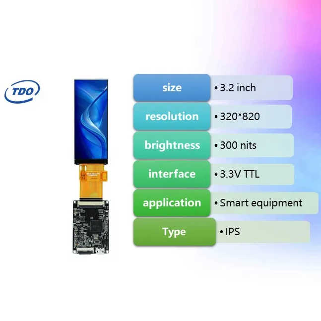 Pantalla HMI TDO de 3.2 Pulgadas, 320*820 IPS, Módulo de Pantalla LCD TFT Serial UART para Arduino/STM/ESP con Interfaz TTL