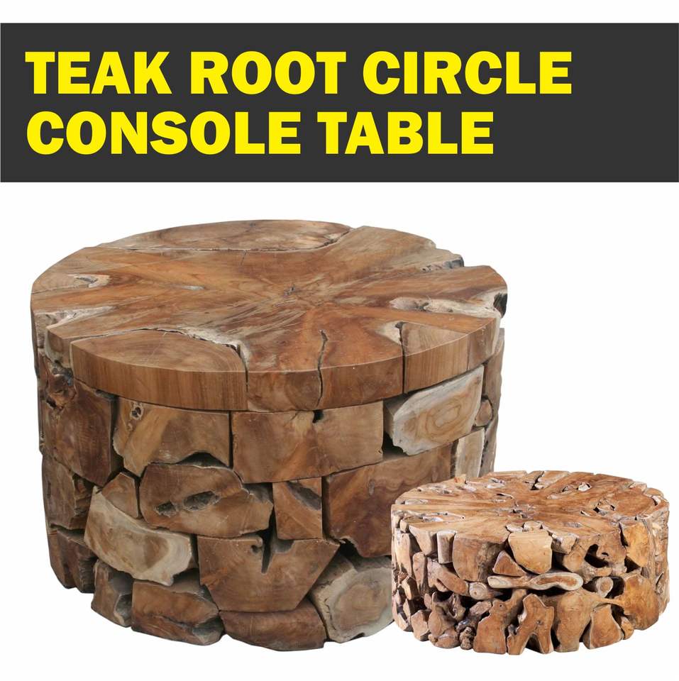 Mesa Consola Circular de Raíz de Teca, Muebles para el Hogar