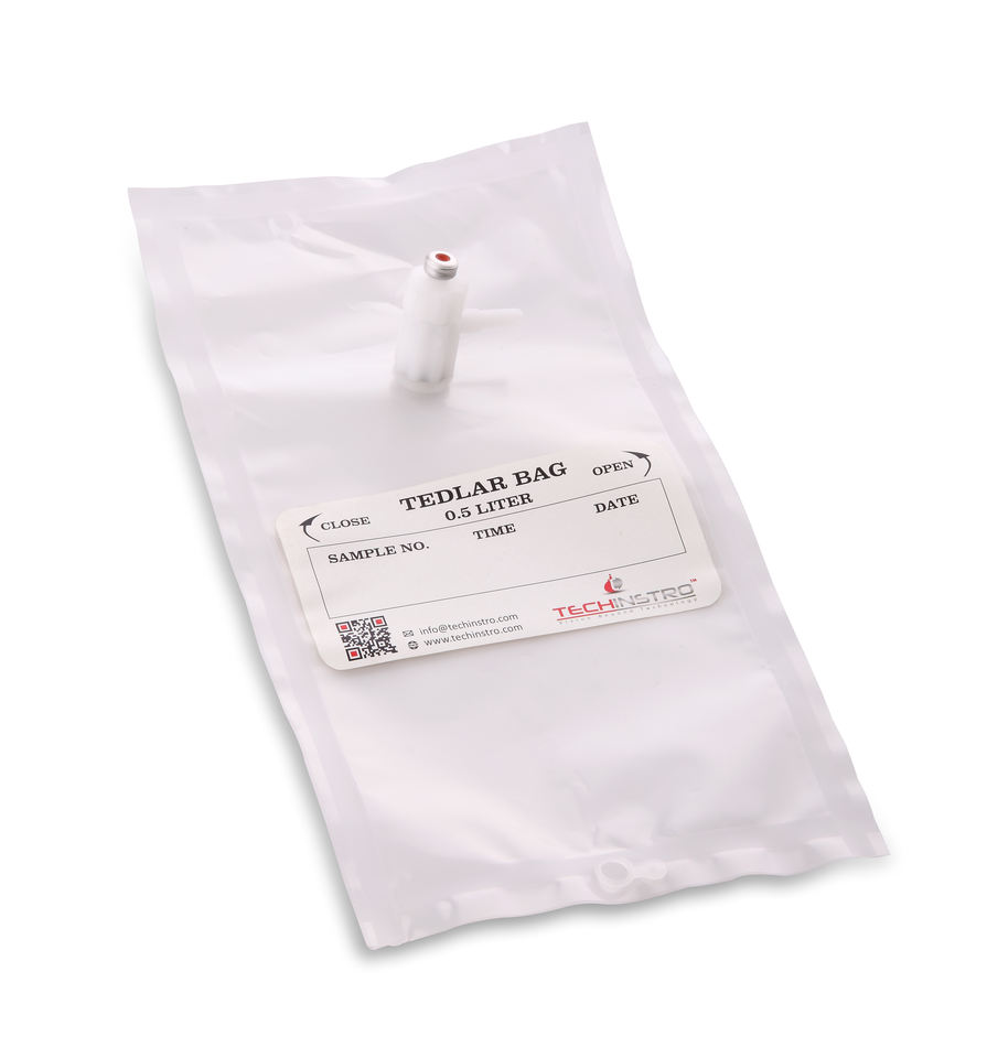 Bolsa de Muestreo de Gas PVF TECHINSTRO, Válvula Única, Hermética, Capacidad de 5 Litros, Grosor de Película de 2 Mil, Recolección y Almacenamiento Seguro de COV Reactivos