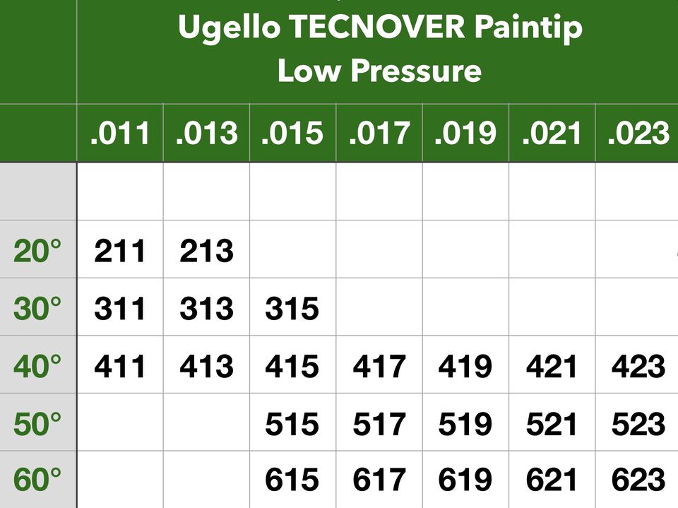 Tamaño de la boquilla:From 0,011" to 0,023"
