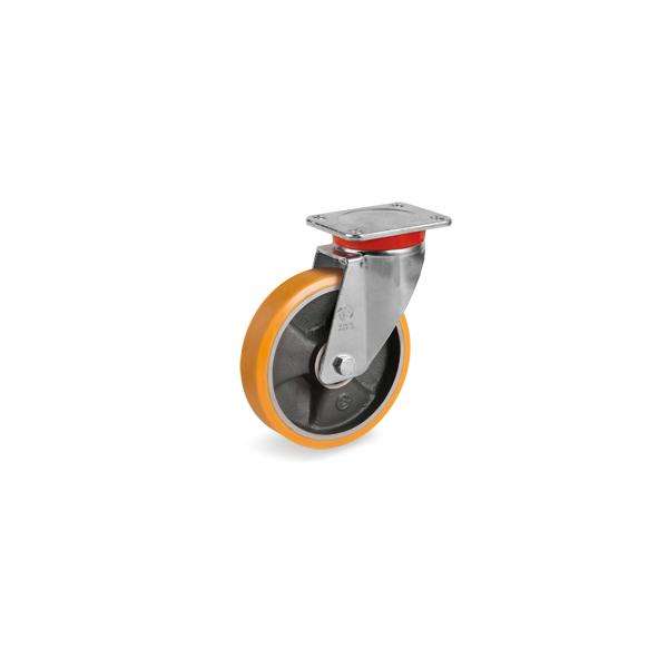 Ruedas de poliuretano TELLURE ROTA - 657804 TR', Centro de hierro fundido, soporte de placa superior giratoria tipo EP-ancho de rueda 30mm, Ø 150 mm