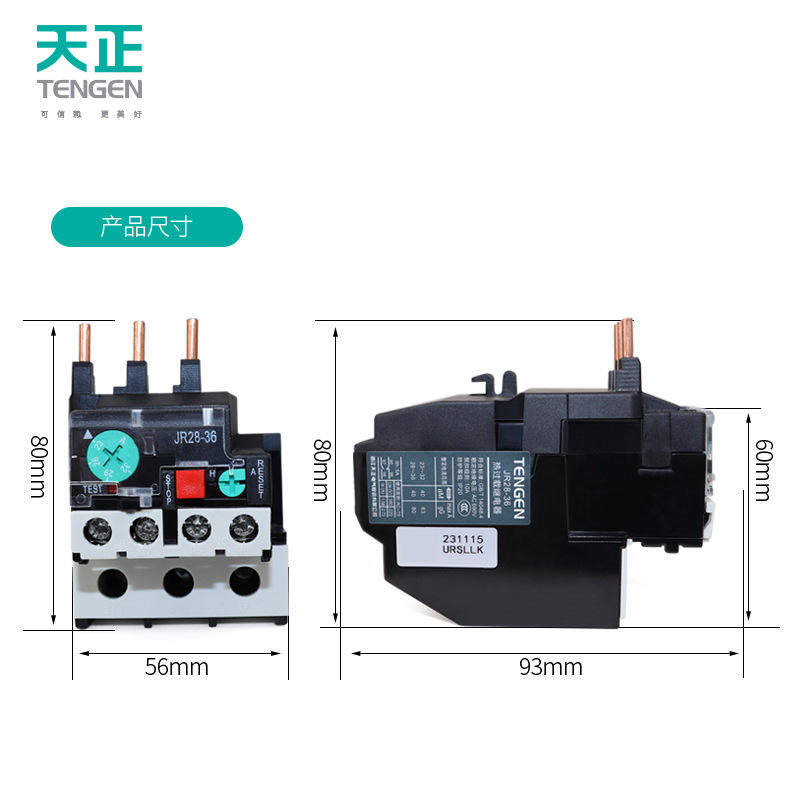 Relé de Sobrecarga Térmica TENGEN JR28-36 32A, Protección de Motor, CA 220V, Bobina Electromagnética