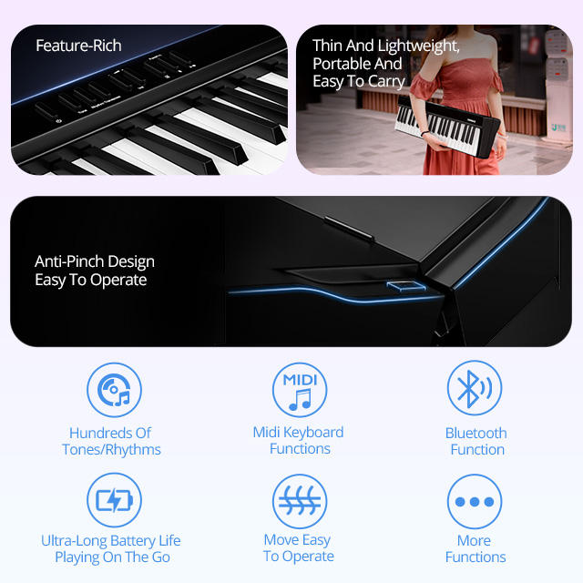 TERENCE V20 Piano Digital Electrónico Plegable de 88 Teclas, Portátil para Principiantes y Estudiantes