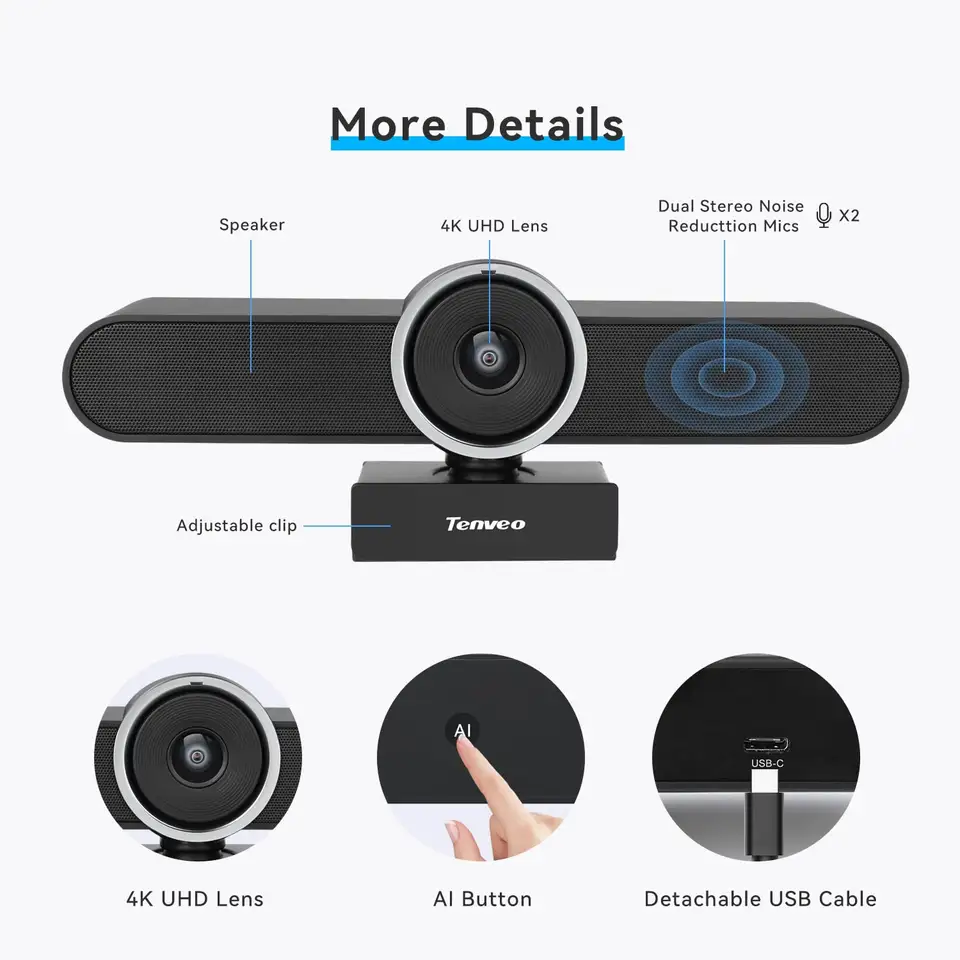 Cámara web TEVO-VA4K 4K de 8MP con IA, dispositivo de seguimiento automático para tablero plano interactivo, inteligente, videoconferencia, Zoom/Teams/Skype/Google Meet