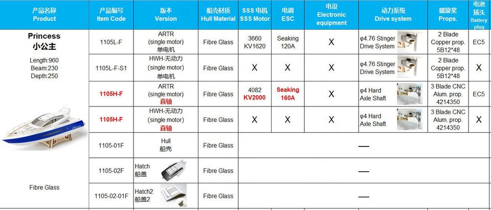 Descripción:Fibra de vidrio sin escobillas Motores Básculas modelo Control remoto barco 1105